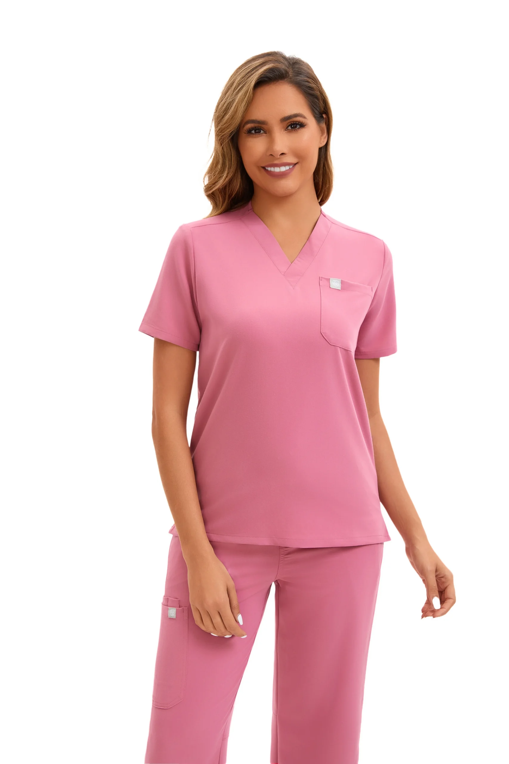 Made from our signature EZLuxFlex™ blend (72% polyester, 21% rayon, 7% spandex), the ElenaFlex™ top delivers 4-way stretch, moisture-wicking, and wrinkle-resistant performance—perfect for long shifts, quick moves, and high-pressure days.
